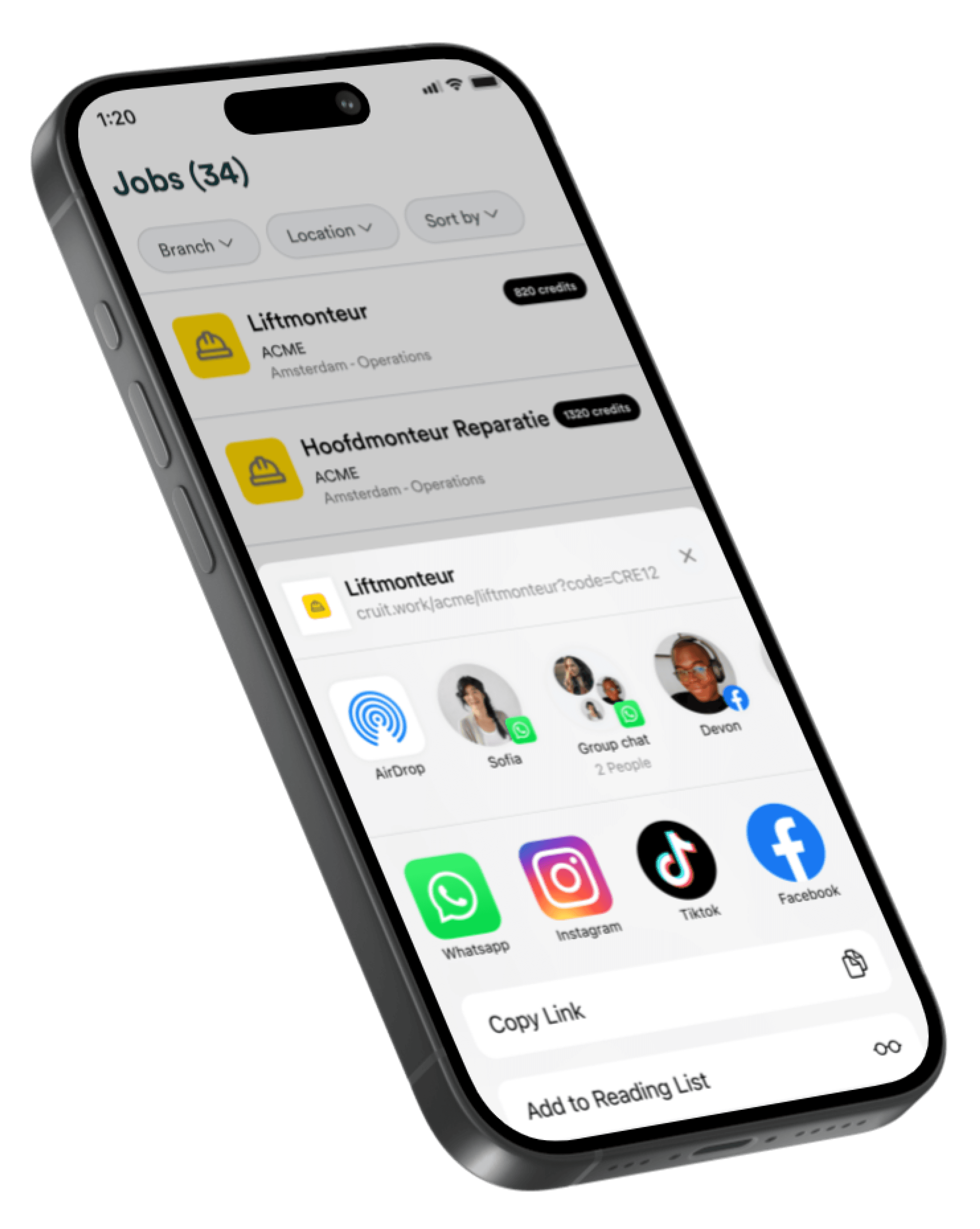 Laad eenvoudig banen in uit je ATS. Kies een beloning per sollicitatiestap. Maak de baan referable, en maak van elke medewerker een recruiter.